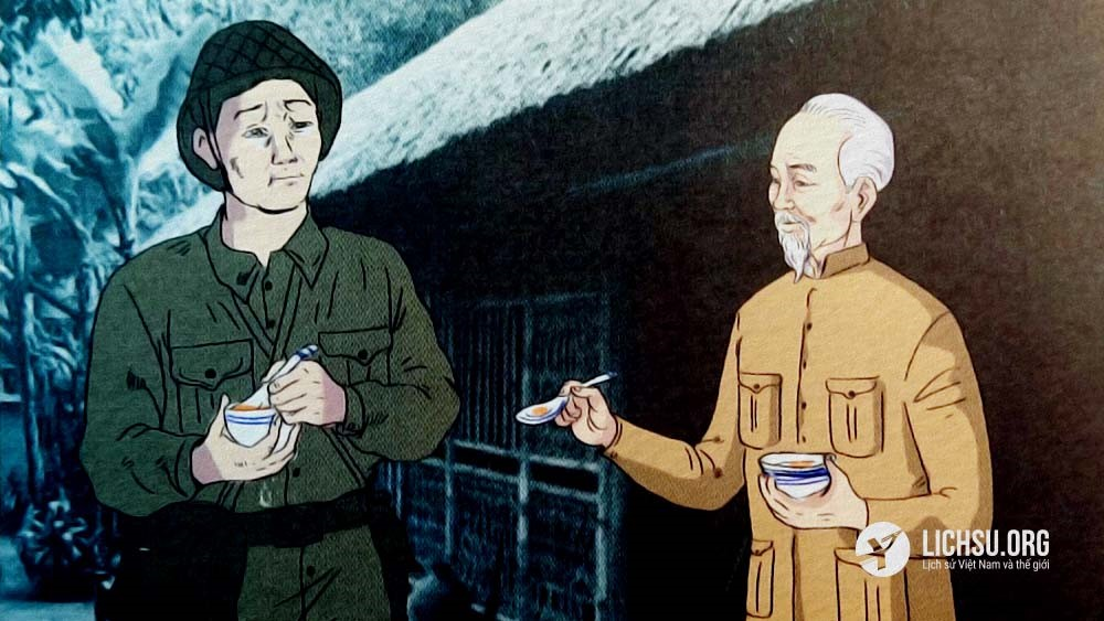 - Khổ quá, anh ơi! Em có sung sướng gì đâu. Thương Bác, em vừa ăn ra rớt nước mắt, nhưng không ăn lại sợ Bác không vui, mà ăn thì biết cái chắc là các anh mắng rồi...